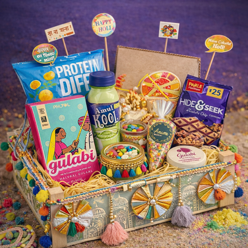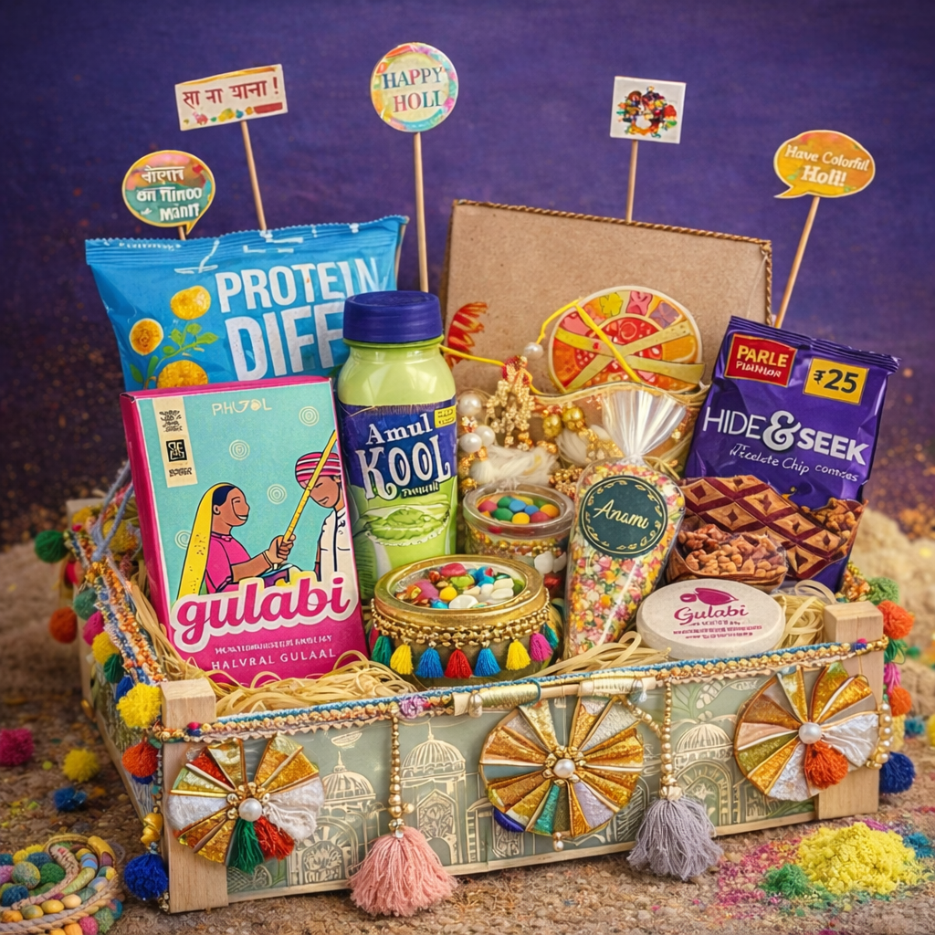 Celebrate Holi with warmth and tradition through our Premium Basket Holi Gift Hamper, thoughtfully curated to deliver a rich festive experience. Presented in a decorated basket hamper, this premium selection blends classic Holi essentials with festive delicacies and décor, making it ideal for corporate gifting, client appreciation, employee rewards, and personal celebrations.