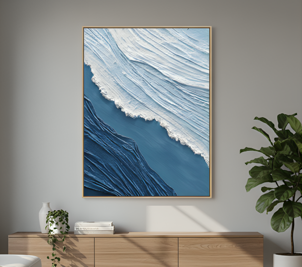 Experience the movement of the sea with our Ocean Wave Texture Art. Layered strokes and dimensional textures capture the moment a powerful wave curls and crashes, freezing it in time. The rich surface detail adds a tactile sensation, evoking the calm and energy of the ocean. Subtle highlights and shadowing create a mesmerizing perspective that enhances any space dedicated to relaxation or visual harmony.